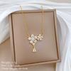 Zircon Five-Leaf Flower Light Luxury Temperament Gorgeous Full Diamond Necklace Female Versatile Collarbone Chain Titanium Steel Chain
