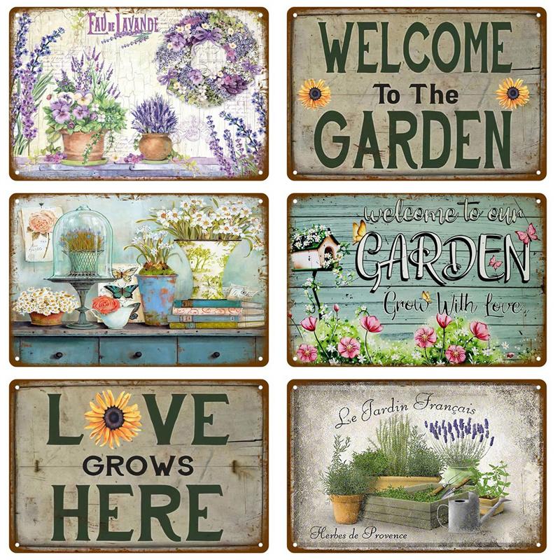 Vintage Tin Sign Flowers Birds Car Metal Plaque Welcome Poster Metal Sign Wall Decor For Cafe Home Garden Farm Beach Hut Outdoor
