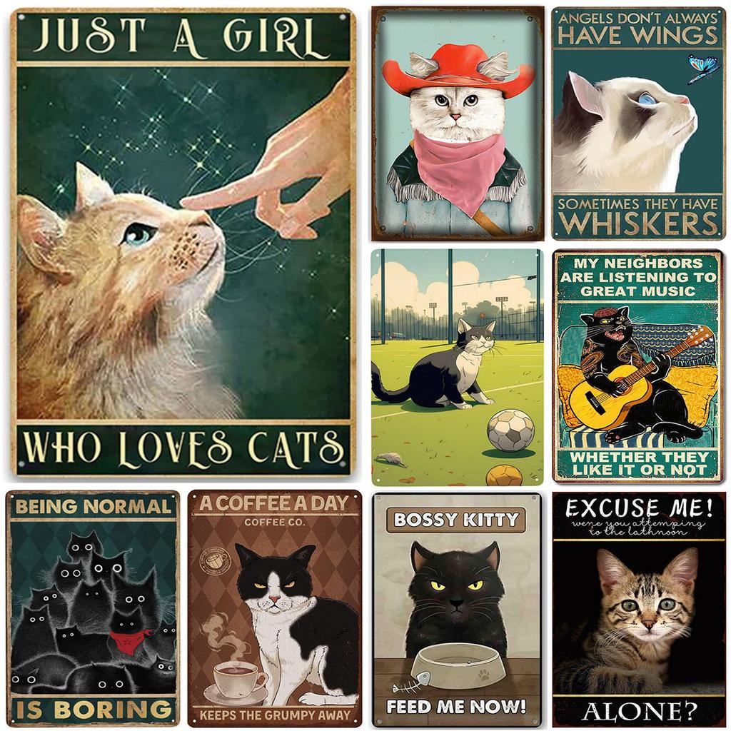 Vintage Cat Posters Metal Tin Signs Set-JUST A GIRL WHO LOVES CATS-Decorative Wall Art for Cat Lovers In Home, Office, or Bar