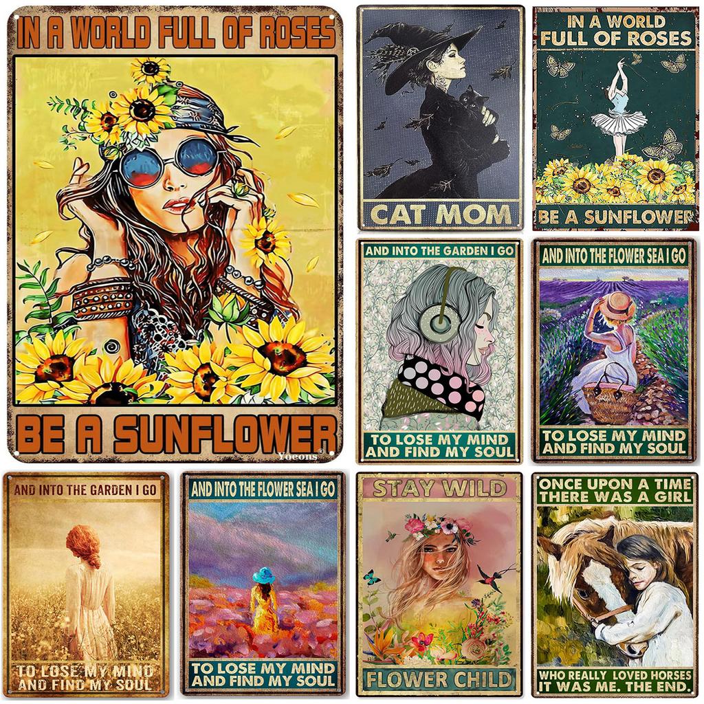 Vintage MetL Tin Signs Funny In A World Full of Roses Be A Sunflower Poster Tin Signs Decoration for Home Cafe Bars Wall Decor