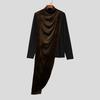 INCERUN Autumn Men High Neck Long Sleeve Fake Two-piece Irregular Velvet Patchwork Casual Tops T-shirts