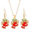 Christmas Ornaments Elk Socks Santa Claus Snowman Necklace Pendant Earrings Bijouterie Sets