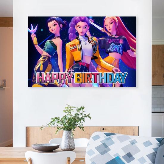 Background Cloth Demon Movie Hunters Happy Birthday Banner Backdrop Hanging Cloth Decoration Kids Party Supplies