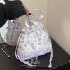 Drawstring Bento for Work, Summer Leisure, Literary and Artistic Work, Fresh Small Cloth Bag, Handbag, Lightweight Floral Bag
