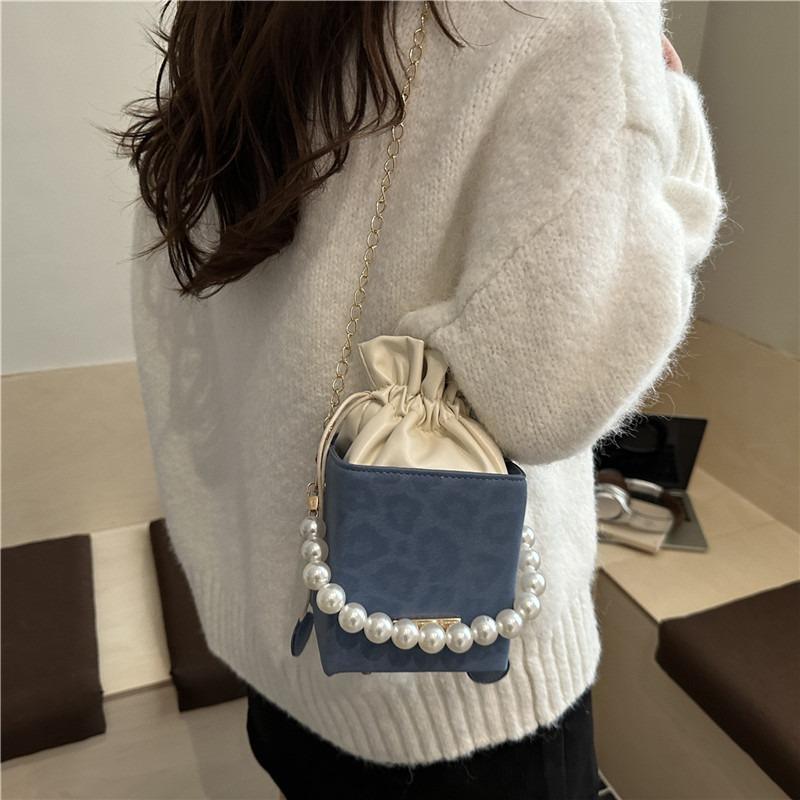 Hand Carry Pearl Bucket Bag Women's New Autumn Simple Fashion Shoulder Bag Niche High-end Textured Messenger Bag