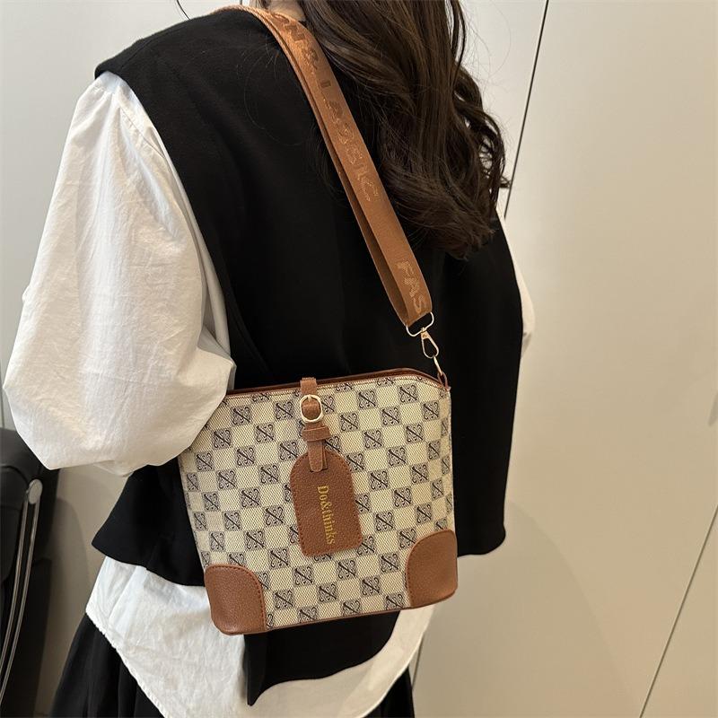 Popular Bags Women's Bags New Trendy Fashion Autumn and Winter Broadband Messenger Bags Checkered Retro Bucket Bags