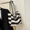 Literary Contrasting Color Striped Canvas Bag Tote Large Capacity Shoulder Lazy Shopping Bag Large Bag