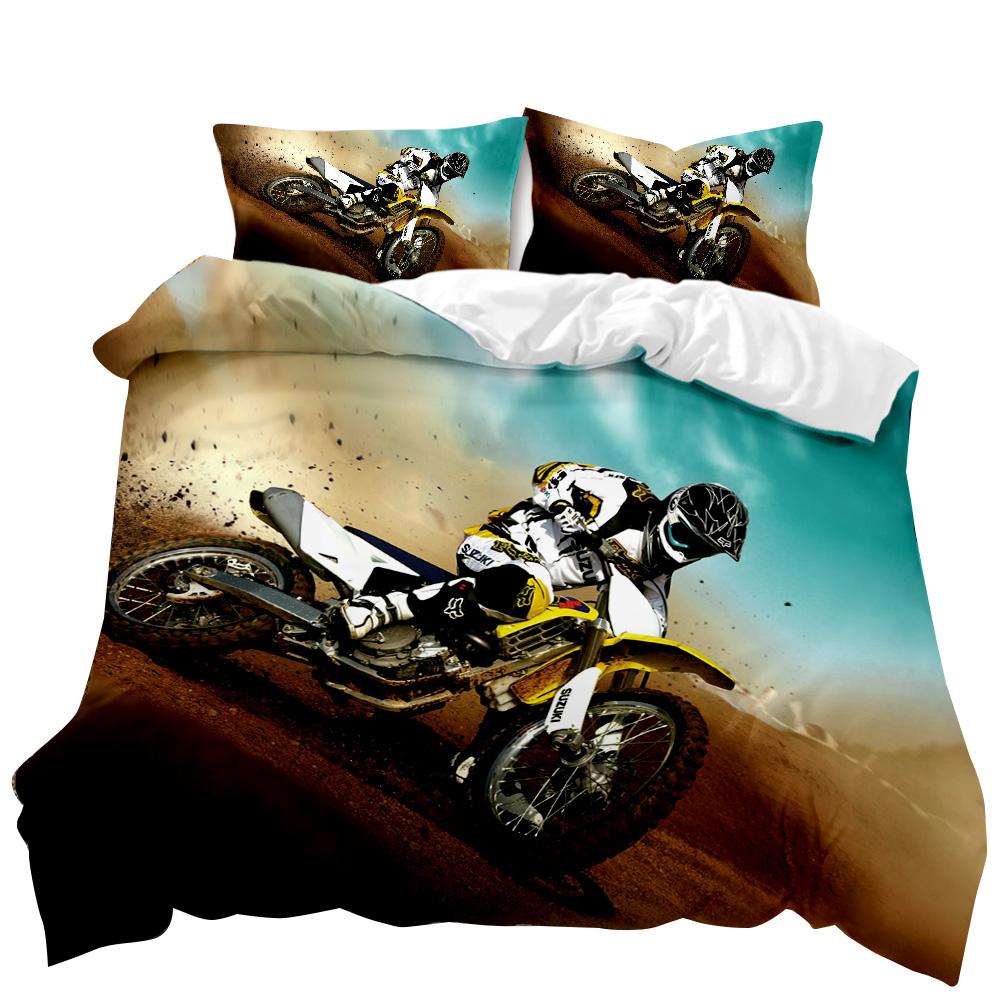 Motorbike Duvet Cover Motocross Rider Teens Racing Motorcycle Dirt Bike Motorbike Vehicles Extreme Sports Quilt Cover