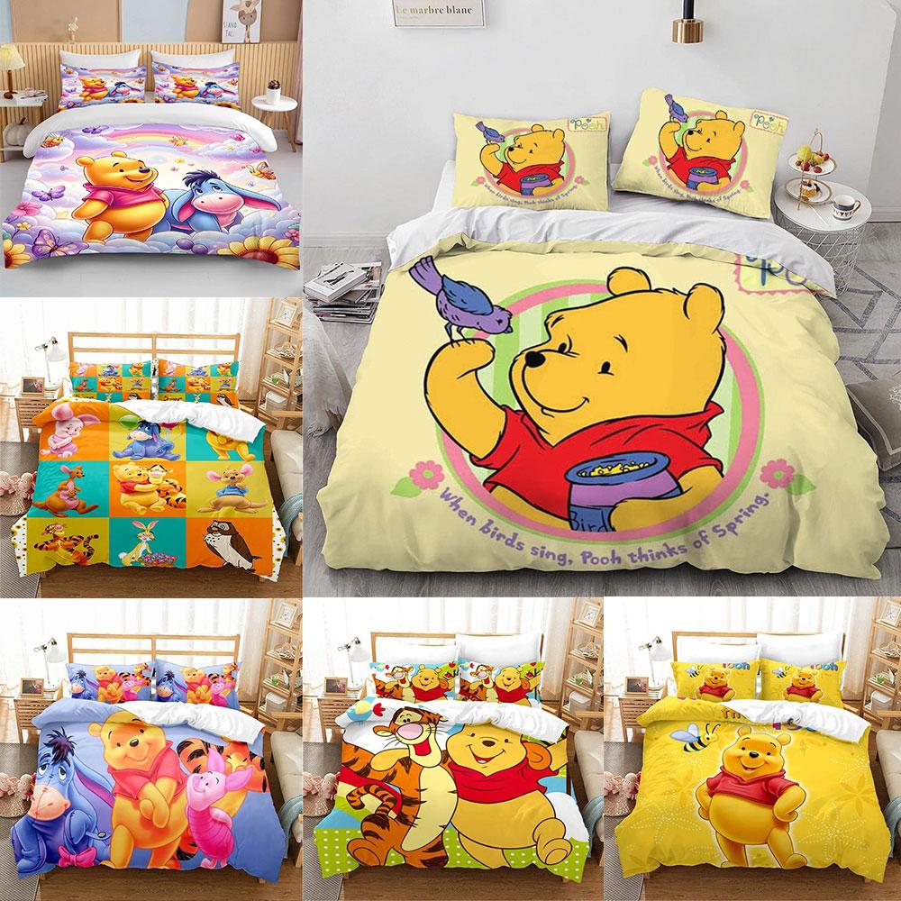 Winnie The Pooh Printed Bedding Sets Cartoon Comforter Cover Bed Cover Duvet Cover Pillow Case 2-3 Pieces Sets Kids Adult Size