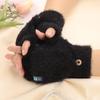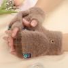 Women's Winter Windproof Plush Fingerless Flip Gloves - Thickened and Warm for Outdoor Use