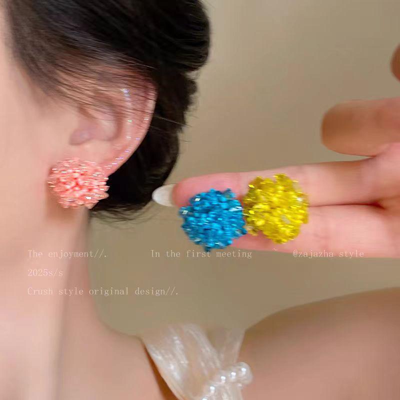 Handmade 2025 Refreshing Blue Beaded Stud Earrings - Unique High-End Vacation Style Design