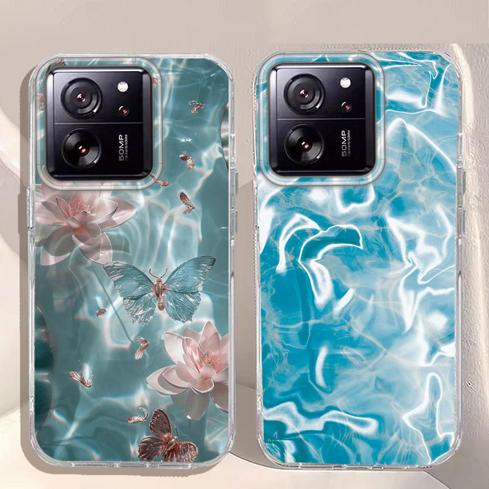 Water Texture Butterfly Flower Phone Case for Xiaomi 13T 14T 11 Lite Poco X5 M6 Pro X6 X7 X3 Pro NFC C75 C71 C65 C61 M5S Cover
