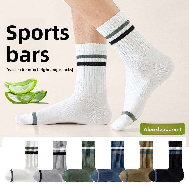 Men's Autumn Leisure Aloe Vera Essential Oil Emollient Antibacterial Deodorant Anti Pilling Right Angle Sports Socks