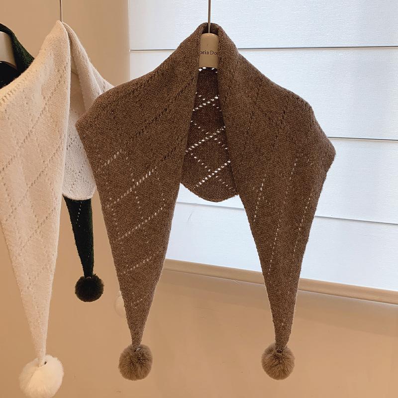 New Fashionable Fur Ball Detachable Knitted Shawl Versatile Neck Gaiter Warm Triangular Scarf for Women In Winter