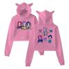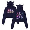 Hot Anime Kpop Demon Hunters Print Hooded Fashion Women Girl Sweatshirt Cropped Hoodies Casual Tops Harajuku Cat Ear Sweatshirt
