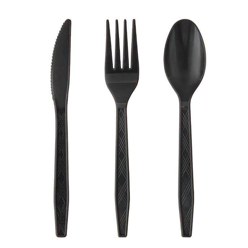 Solid Black Theme Cutlery Birthday Party Paper Disposable Tableware Paper Napkins Cups Plates Tablecloth Fork Spoon Party Decor