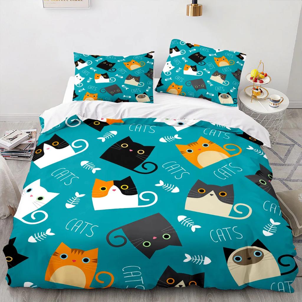Cartoon Animal Cat Duvet Cover 3D Large Print Double Size Quilt Cover Bedding Set Single Set