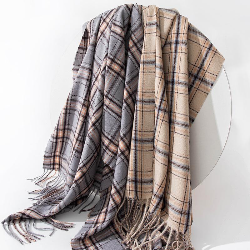 Scarf New Imitation Cashmere Retro Scarf Women's Korean Autumn and Winter Plaid Scarf Tassel Shawl Scarf