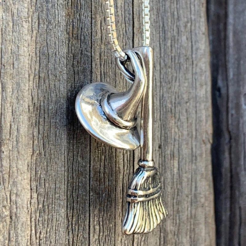 1pc Gothic Style Witch Hat, Broomstick, Geometric Pendant Necklace, Suitable For Any Occasion