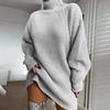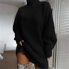 Autumn Winter Women's Solid Color Loose Knitted Sweater Dress Women Long Sleeve Turtleneck Pullover Knit Dress