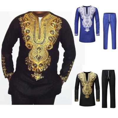 Men's Winter Luxury Print Long Sleeve Dashiki Shirt Suit