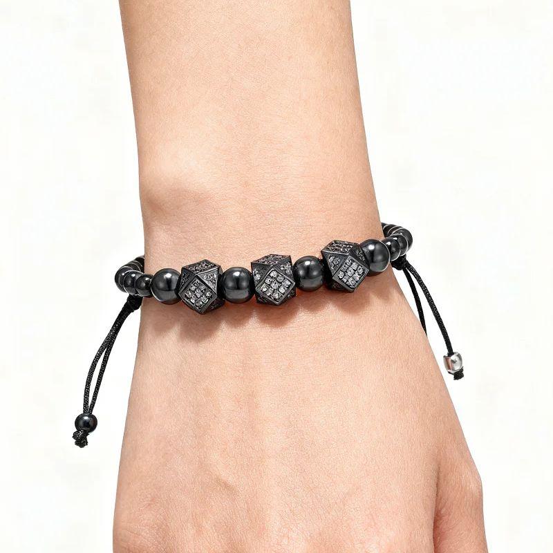 Vintage Copper Bead Inlaid Zircon High-End Bracelet Design Sense Hexagonal Adjustable Braided Bracelet