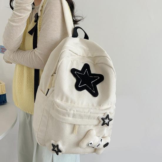 Stylish Star Pattern: Elevate your style with the captivating star design adorning the soft corduroy fabric of this backpack, seamlessly blending aesthetics with functionality to appeal to fashion-forward students and young professionals seeking a unique expression of their personality.