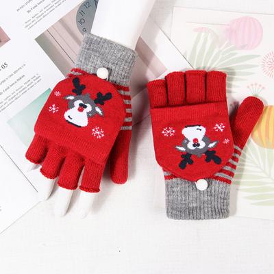 Xuehuaxiu's New Women's Winter Thermal Gloves, Cute Cartoon Christmas Elk Knitted Half-finger Flip Gloves Wholesale