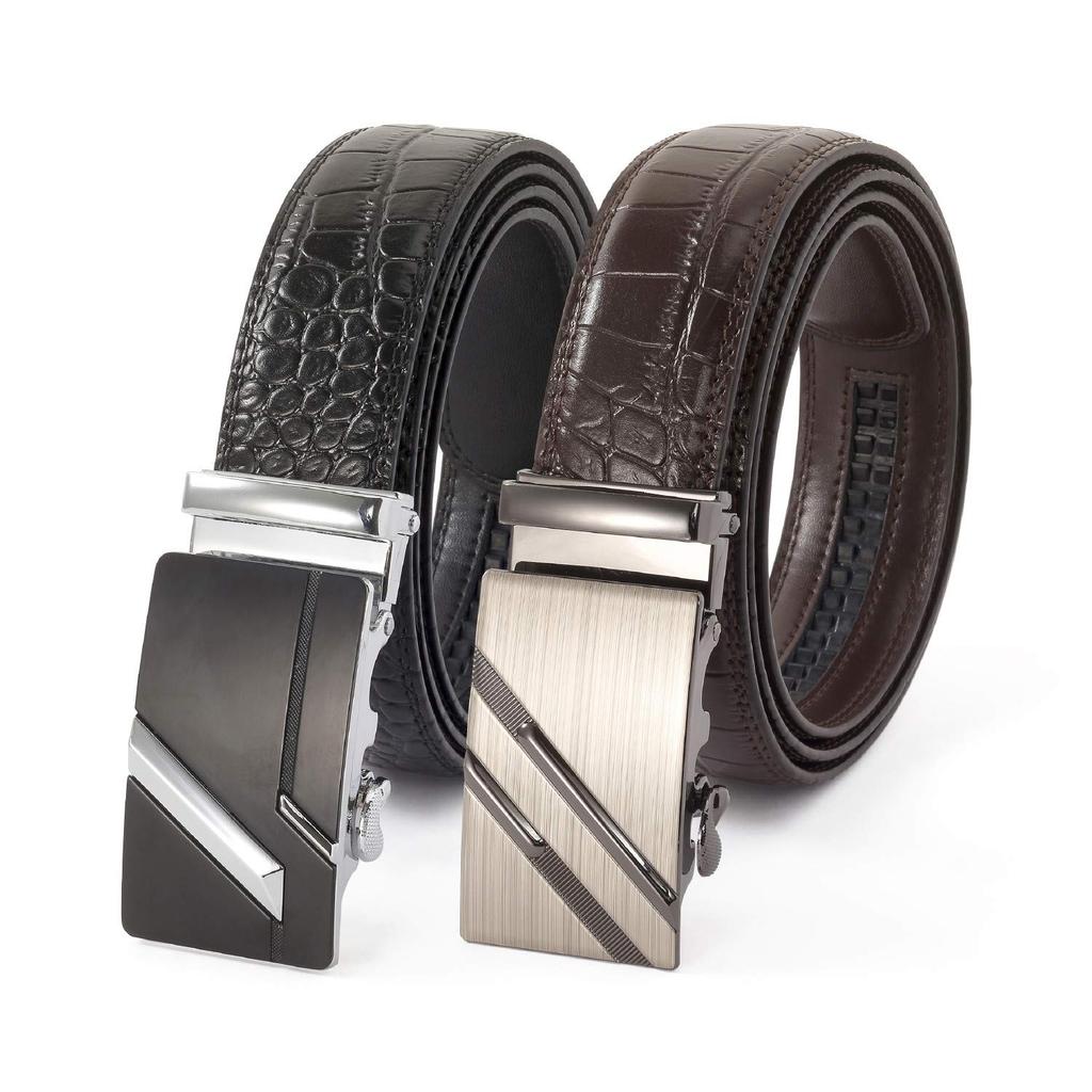 Little Island Genuine Leather Belt of for Business and Casual Wear Size Total 136cm Crocodile-Embossed Easy-to-Use (Set 2, Black/Brown) Men, (Free