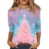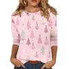 Women's O-Neck 3/4 Sleeve Christmas Print Top