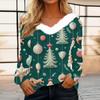 Women's Fashion Long Sleeve Christmas V-Neck Printed Party Furry Top