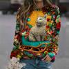 Women's Fashion Casual Long Sleeve Christmas Printed Neck Sweatshirt Top