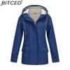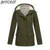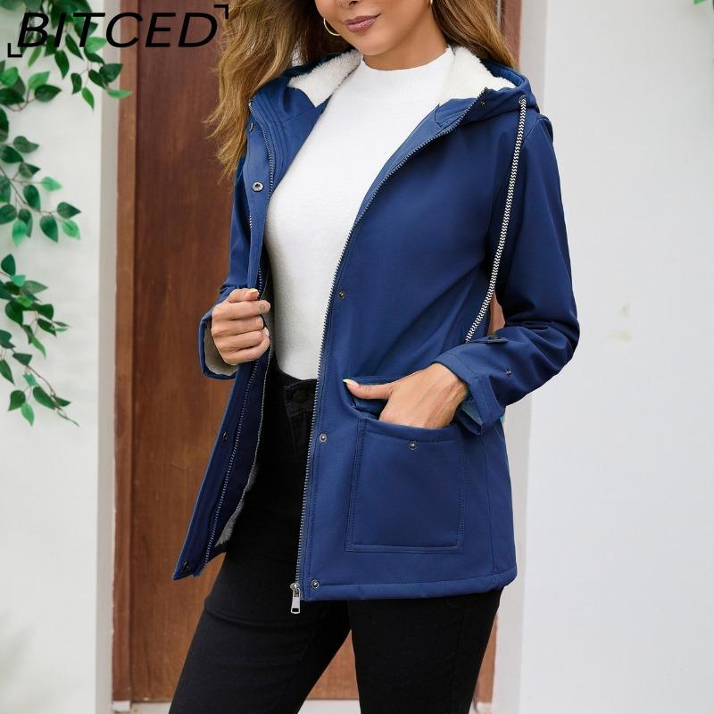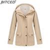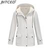 BITCED Women's Spring/Autumn Hooded Trench Coat with Fleece Lining and Water-Repellent Finish Long-Sleeved Zip-Up Cardigan