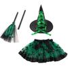 Halloween Pumpkin Dress Set Witch Broom Witch Hat Set European and American Printed Mesh Skirt Set