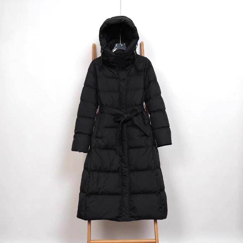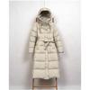 Autumn and Winter New Long Down Jackets for Women Over the Knee, Hooded Waist and Thin High-end Warm Jacket