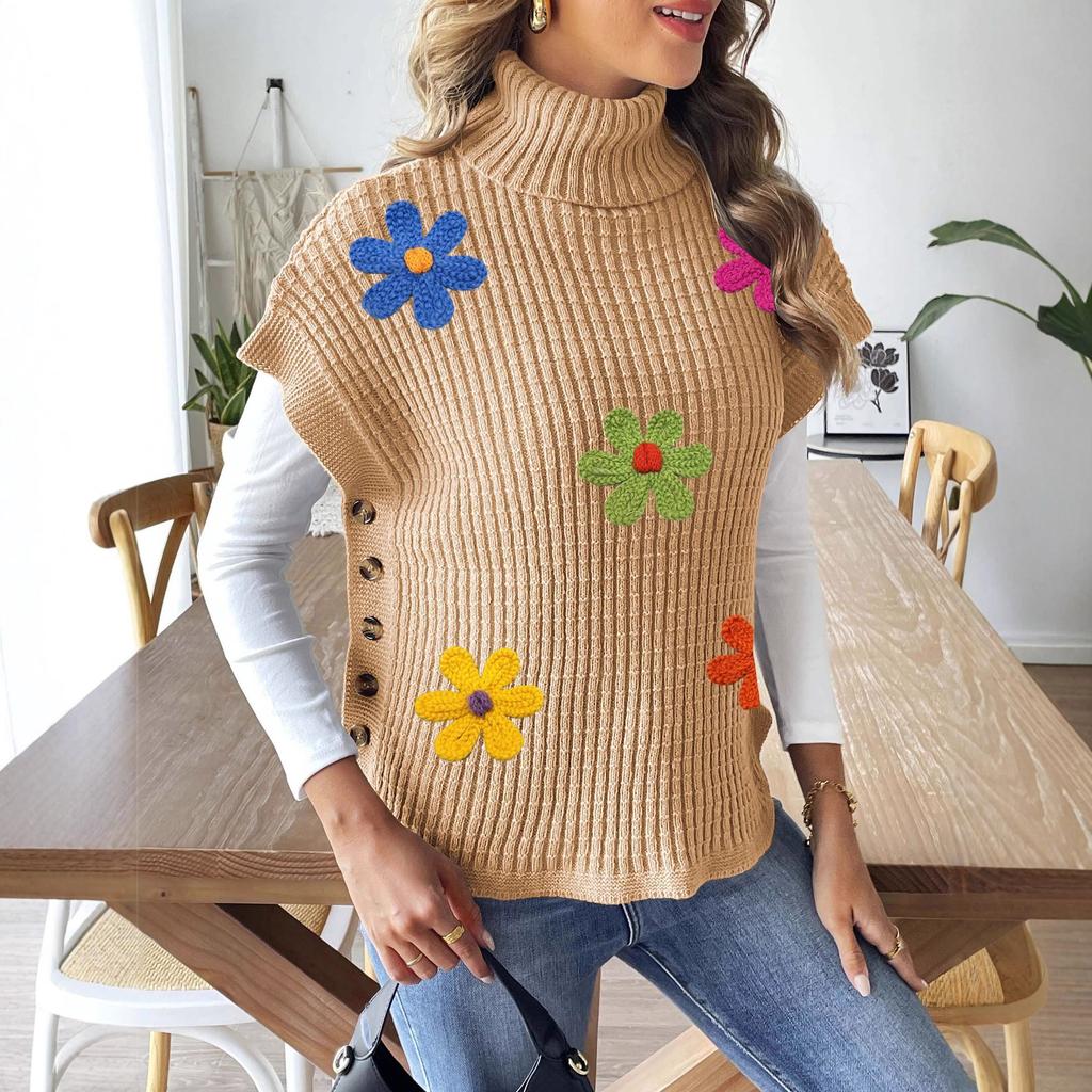 Women's Spring and Autumn New Style Vest High-neck Casual Pullover Sweater Vest Button Decorative Top