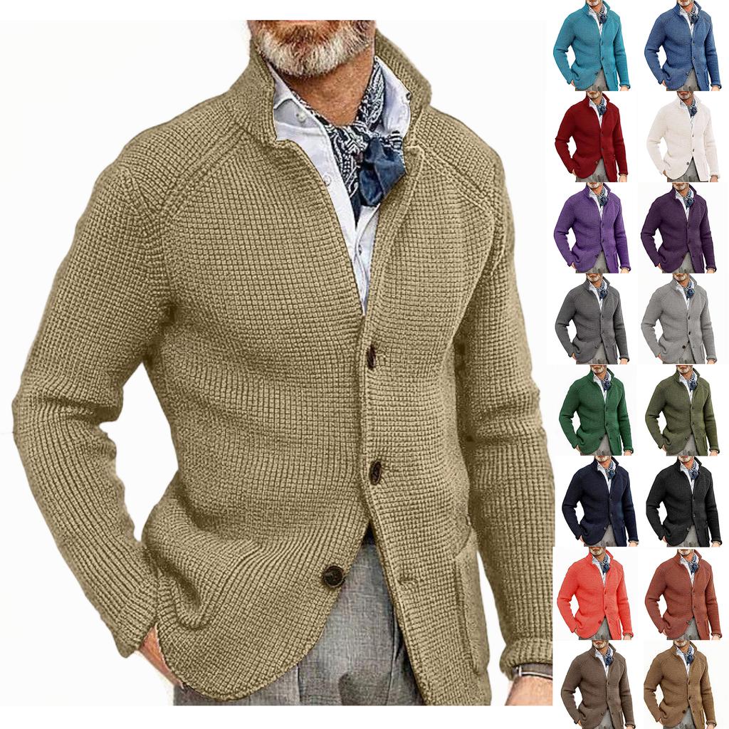 Men's Casual And Trendy Solid-color Warm Sweater Jacket, Men's Long-sleeved Button-up Stand-up Neck Knitted Sweater