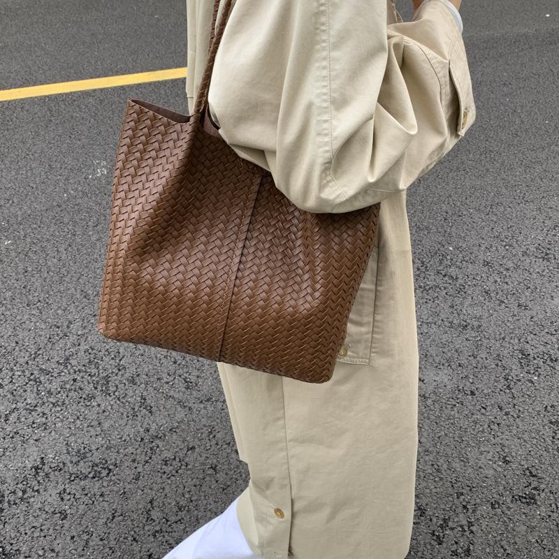 Simple and Large-capacity Woven Shoulder Bag Women's 2025 Autumn and Winter Niche Soft Leather Versatile Commuter Underarm Mother Bag