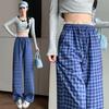 Lace Lace Waist Plaid Pants Casual Summer Lazy Slack Wide Legs High Waist Thin Drape Straight Pants
