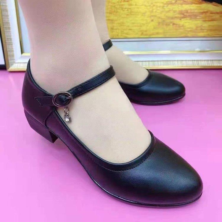 Single Shoes Women's Medium Heel Thick Heel 2025 Spring New Middle-aged and Elderly Mother Shoes Soft Sole Work Shoes Square Dance Women's Shoes