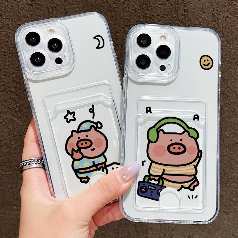 Card Slot Holder Silicone Wallet Pocket Case For iPhone 17 Air 16 14 13 Samsung S23 S24 S25 Plus Redmi Note 14 13 12 11 10 Cover Clear Phone Bumper