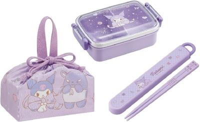 Skater Kuromi 25 Big Ribbon Antibacterial Dishwasher Safe Soft Lid Tight Lunch Oval 360ml Trio Set Lunch Drawstring My Melody Kuromi Kids Set Box,