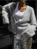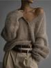 Women's Pink Fuzzy Cardigan, Front Button, Soft Pile, Loose Fit