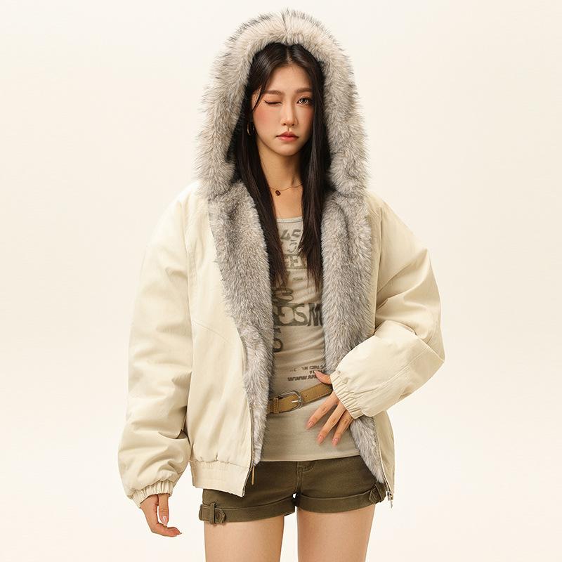 Winter Plush Collar Jacket for Women American Retro Hip-hop Cleanfit Warm Men Clothing Parkas Couple Streetwear Zipper Coats