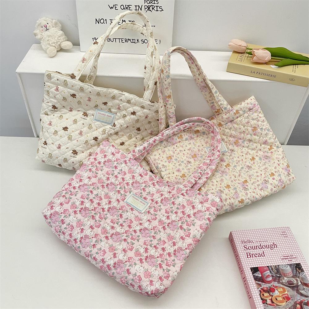 10 Cartoon Printed Quilted Quilted Cotton Bag Shoulder Cotton Bag Women's Horizontal Large-capacity Portable Canvas Bag