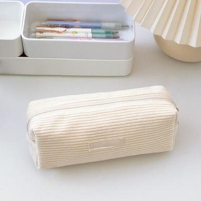 Beige Pencil Pouch Fashionable Makeup Bag Cute Corduroy Pencil Case For Office Large Capacity Zipper Makeup Pouch Pencil Bag