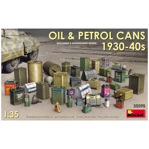Miniart 1/35 Oil & Petroleum Can Set, 1930s-40s, Plastic Model, MA35595