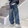 Boys Autumn Denim Pants Solid Elastic Wiast Trousers Children Jeans Loose Wide-leg Pants Teenager Casual Straight Trouser