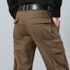 Men's Plus Size Loose Straight Pants Multi-Pocket Casual Cargo Long Pants Four Seasons Pure Cotton Mid-Waist Deep Crotch Middle-Aged and Elderly