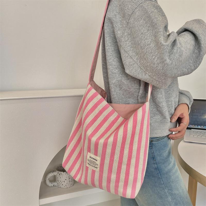 Canvas Bag Women's Trend Striped Fashion Versatile Shoulder Bag Shopping with Commuter Shoulder Bag